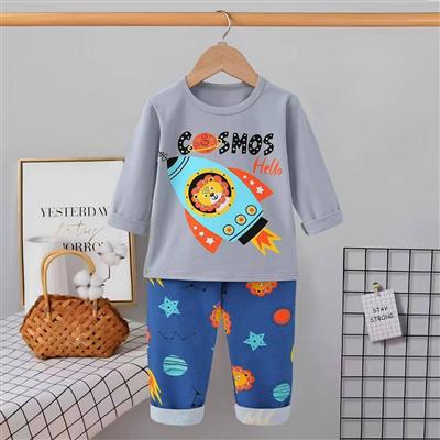 ست نخی بلوز طوسی و شلوار ابی شیر و موشک سایز 1 تا 3 سال کد 17332