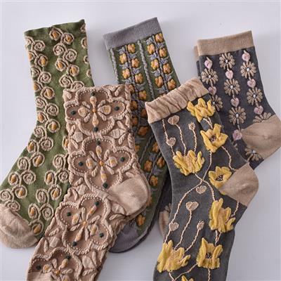 جوراب طرح گل برجسته سایز 7 تا 15 سال کد 18770