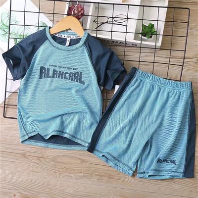 ست تیشرت و شلوارک ورزشی سوزنی RACYKIDS رنگ ابی کد 19280