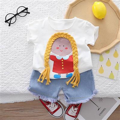 ست تیشرت سفید دختر گیس برجسته و شلوارک جین کد 19400