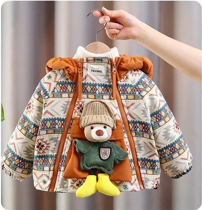 کاپشن ضداب طرح عروسک خرس برجسته رنگ کرم و نارنجی کد 20351