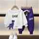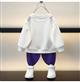 ست دورس سفید طرح GREAT تیکه دوزی دایناسور با شلوار اسلش بنفش کد 20593