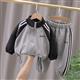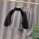 ست سویشرت و شلوار طوسی استین مشکی طرح Celina کد 20698