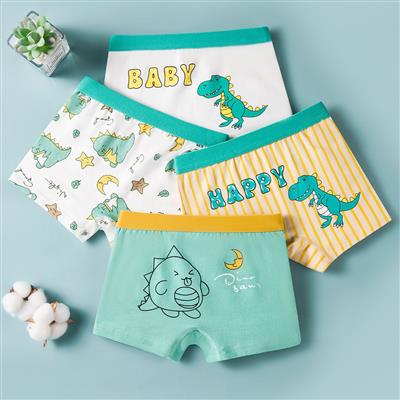 پک چهار عددی شورت پادار دایناسوری طرح رنگ سبز و زرد و سفید کد 20710