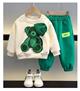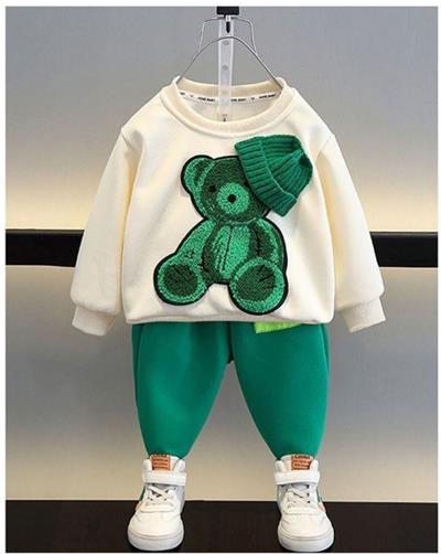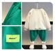 ست دورس شیری خرس برجسته سبز با شلوار اسلش سبز گت دار کد 20735