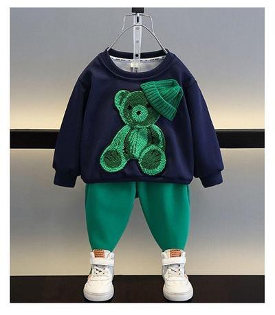 ست دورس سورمه ای خرس برجسته سبز با شلوار اسلش سبز گت دار کد 20736