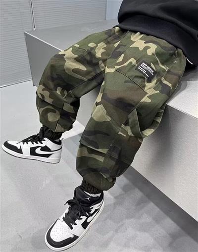 شلوار کتان گت دار فشن چریکی رنگ یشمی کد 20875