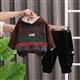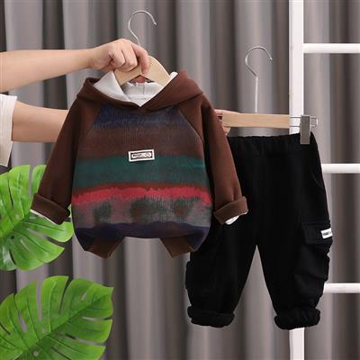 ست داخل پشمی هودی قهوه ای جلو رنگارنگ با شلوار اسلش گت دار مشکی کد 20930