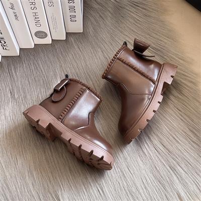 بوت چرم پشت پاپیون بزرگ برجسته عروسکی رنگ قهوه ای کد 21116