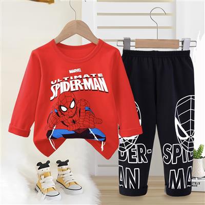 ست نخی بلوز قرمز و شلوار سورمه ای طرح اسپایدرمن و تار عنکبوت سایز بزرگ کد 21297