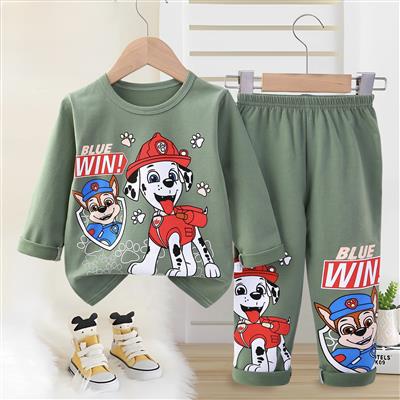 ست نخی بلوز و شلوار سبز طرح سگ های نگهبان سایز متوسط کد 21365