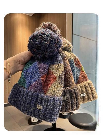 کلاه بافت ضخیم طرح لوزی کد 21377