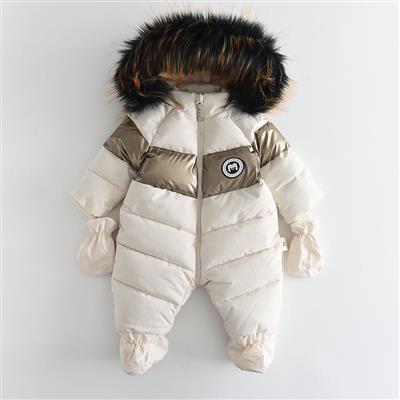 کاپشن سرهمی پاپوش دار با دستکش داخل لاینردار طرح فضایی رنگ شیری و طلایی کد 21388