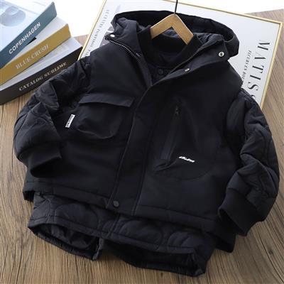 ست کاپشن و پافر کلاهدار طرح Disover Mei رنگ مشکی کد 21439