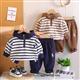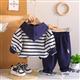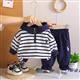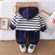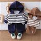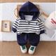 ست هودی راه راه و شلوار اسلش طرح HORSE رنگ طوسی و سورمه ای کد 21457