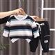 ست دورس راه راه سورمه ای ای و سبز و شلوار کبریتی گت دار سورمه ای کد 21472
