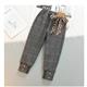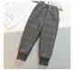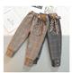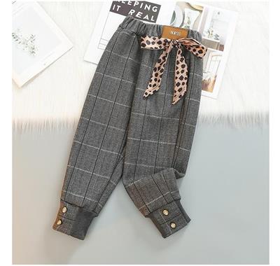 شلوار عروسکی چهارخونه طوسی پایین گت با پاپیون پلنگی کد 21500