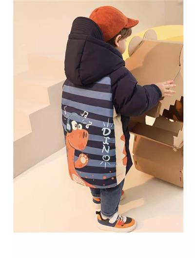 کاپشن کلاهدار ضداب داخل پشم شیشه طرح دایناسور و هدفون رنگ سورمه ای کد 21531