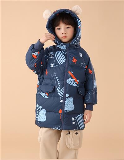 کاپشن کلاهدار ضداب داخل پشم شیشه طرح جوجه اردک رنگ سورمه ای کد 21533