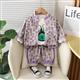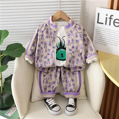 ست سه تیکه سویشرت و شلوار کرم و یاسی و بلوز نخی سفید طرح خرگوش گوش بلند کد 21536