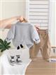 ست دورس طوسی طرح زرافه بزرگ برجسته بت شلوار کتان کرم کد 21567