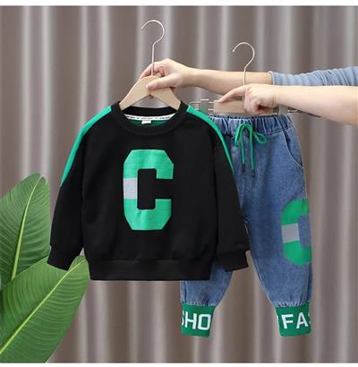 ست دورس مشکی و سبز طرح C با شلوار جین ابی گت دار کد 21603