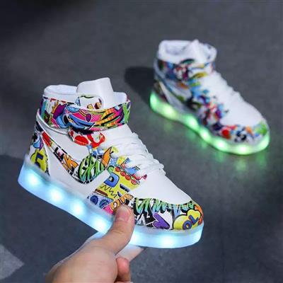 کتونی ساقدار فشن چراغدار شارژی سفید طرح حروف انگلیسی رنگی کد 21613