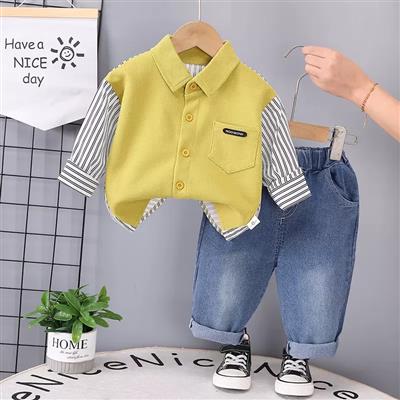 ست شومیز زرد استین راه راه با شلوار جین ابی کد 21623