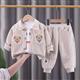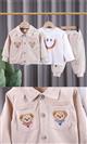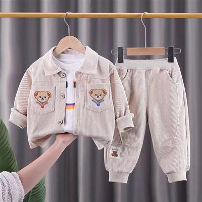 ست سه تیکه کت و شلوار کبریتی کرم خرسی با بلوز سفید نخی طرح اسمایل کد 21640