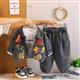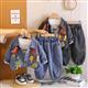 ست سه تیکه بلوز نخی سفید و کت و شلوار جین ذغالی دایناسور برجسته کد 21653