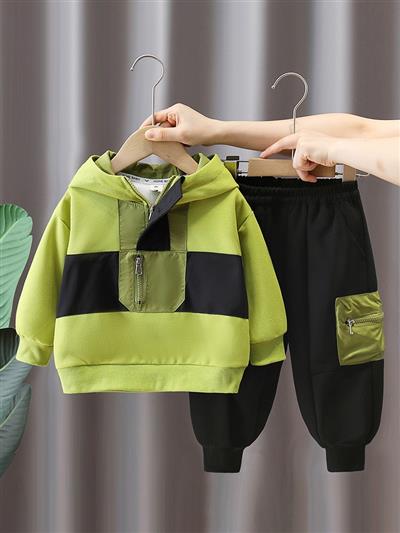 ست هودی سبز وسط زیپ با شلوار اسلش گت دار مشکی کد 21659
