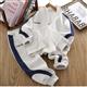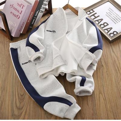 ست سویشرت و شلوار فشن رنگ طوسی بغل نوار سورمه ای کد 21681