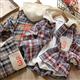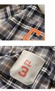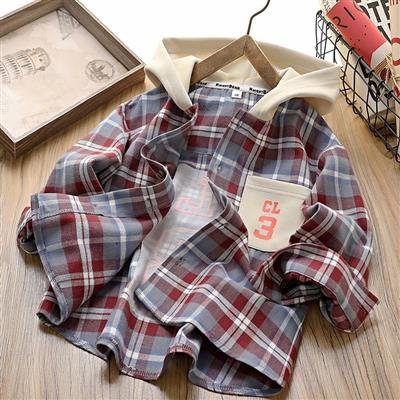 شومیز چهارخونه ابی و زرشکی با کلاه اسلشی شیری کد 21682