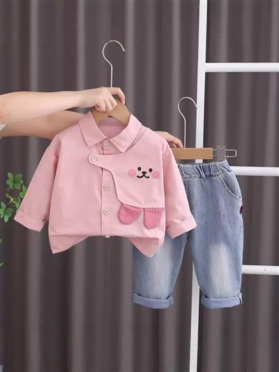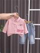 ست شومیز نخی صورتی طرح Seals با شلوار جین ابی کد 21699