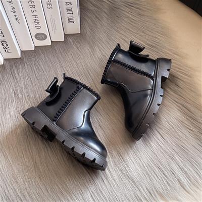 بوت چرم پشت پاپیون بزرگ برجسته عروسکی رنگ مشکی کد 21117