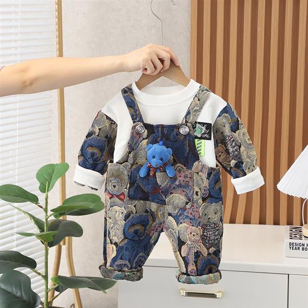ست خواب دو تیکه شومیز و شلوار نخی طرح داک و دیسی رنگ کرم سایز 4 تا 6 سال کد 18107